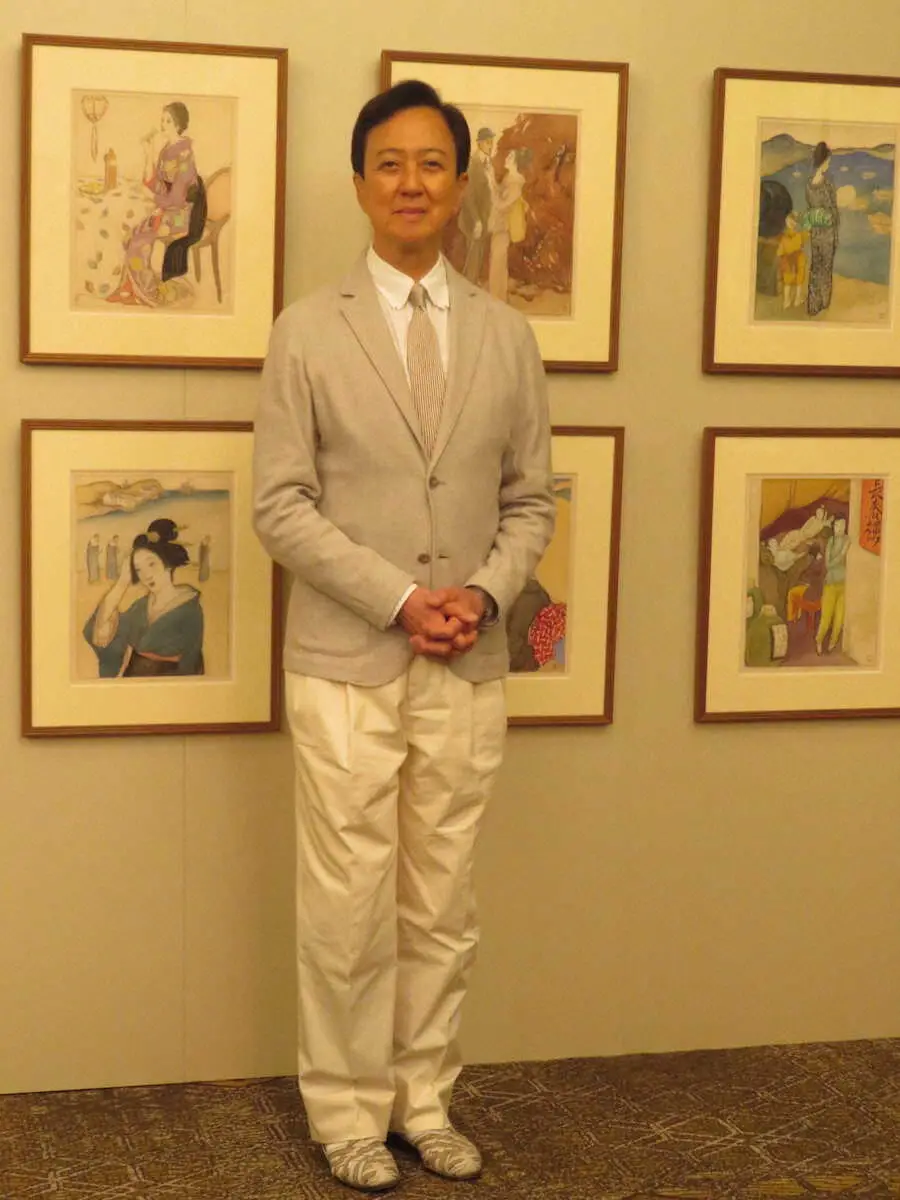 竹久夢二の名画に囲まれ、夢二の世界を描いた「長崎十二景」への意気込みを語る坂東玉三郎