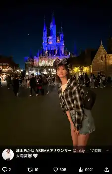 ABEMA人気女子アナ“美脚”デニムミニスカディズニーコーデ!TDL満喫にネット興奮「スタイル抜群」