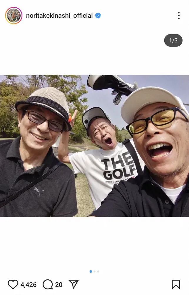 木梨憲武公式インスタグラム(noritakekinashi_official)から 木梨憲武 超大物俳優&タレントと「ハーフゴルフ会!」3ショット 妻・安… ギャラリーで見る この記事のフォト 2025年04月24日の画像一覧 もっと見る 2025年04月24日の画像をもっと見る