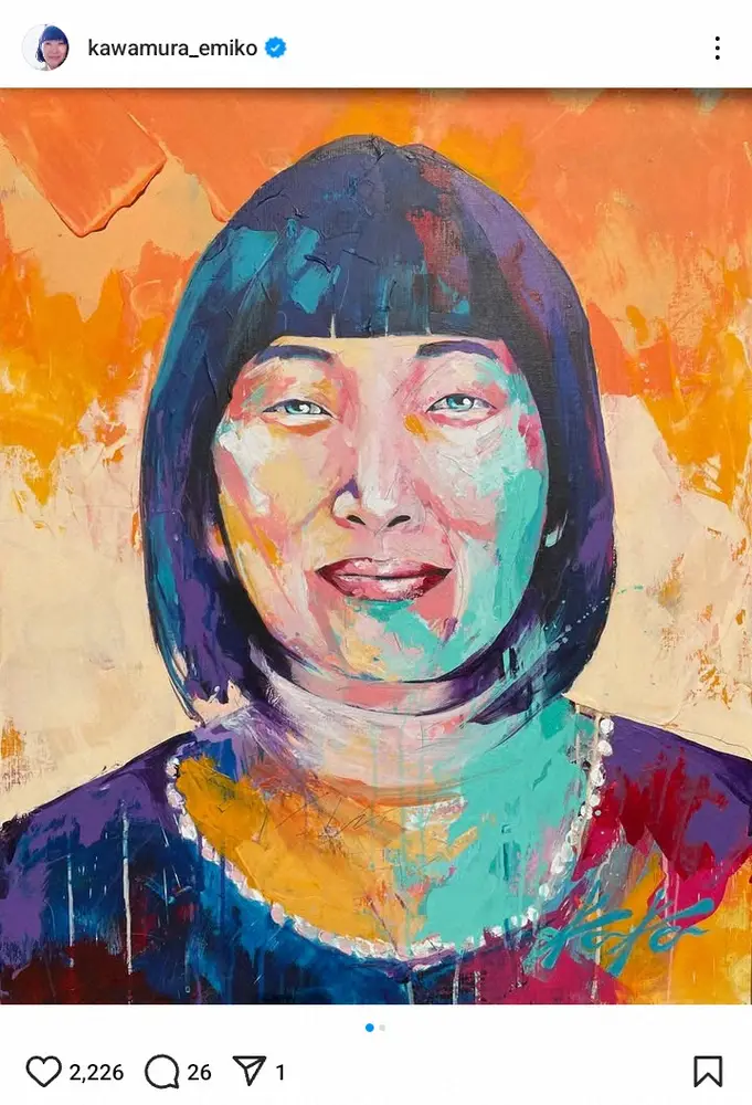 川村エミコ「画家のコガケンさんに描いていただきました」自身の肖像画に感激「泣いちゃいます」