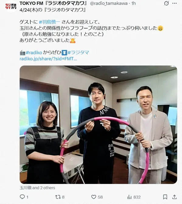最後に羽鳥アナは「後ほど、原さんのフラフープをご紹介したいと思います」と番組ホームページでの紹介を告知。玉川氏は「たぶん衝撃映像になる」と“太鼓判”を押していた。