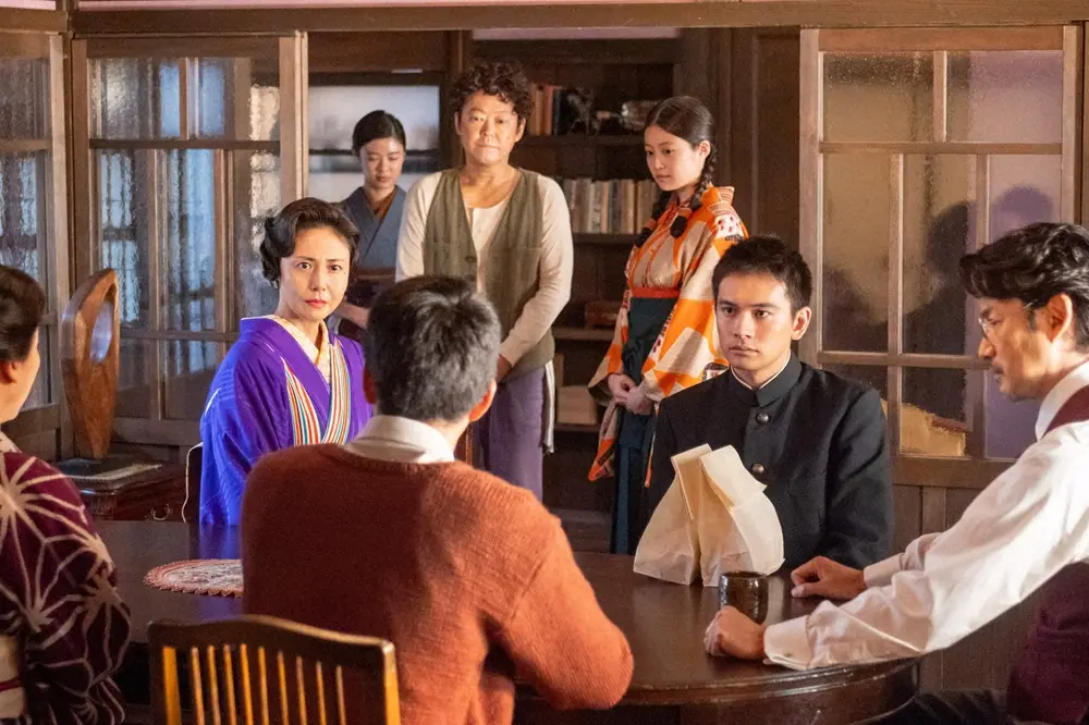 連続テレビ小説「あんぱん」第20話。柳井嵩(北村匠海・右から2人目)は不合格、柳井家は静まり返るも…(C)NHK