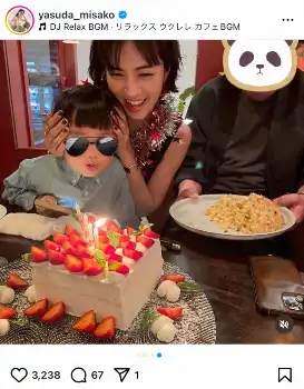 安田は「家族と大好きな仲間が、いつもの大好きなお店で、お誕生日パーティーを開いてくれました」と投稿。夫でデザイナーの下鳥直之氏と2人の息子に囲まれ、ケーキを手に笑顔を見せるショットを披露した。