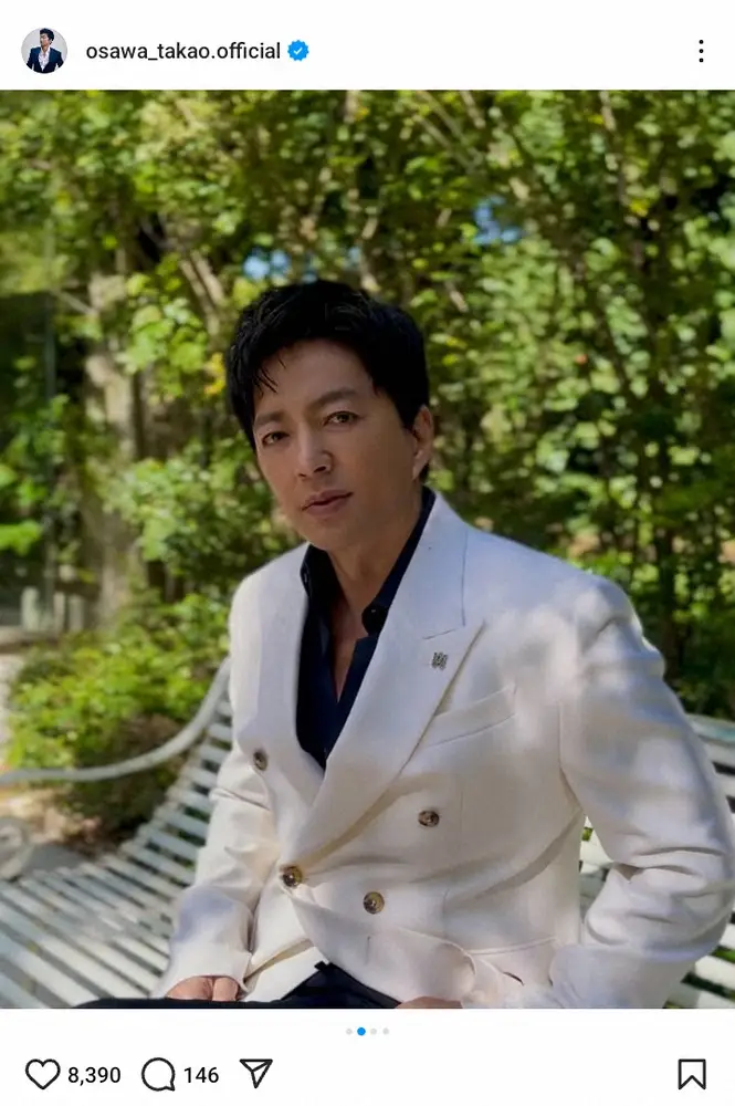 この投稿にフォロワーからは「白のジャケットもお似合いで素敵です」「王子様みたいです…」「ドラマのワンシーンみたい」「シャツのボタン開けすぎ!!!けしからん!!!!!!」「大沢さま 今日は一段と男前」「大人の色気にやられました」などの声が集まった。