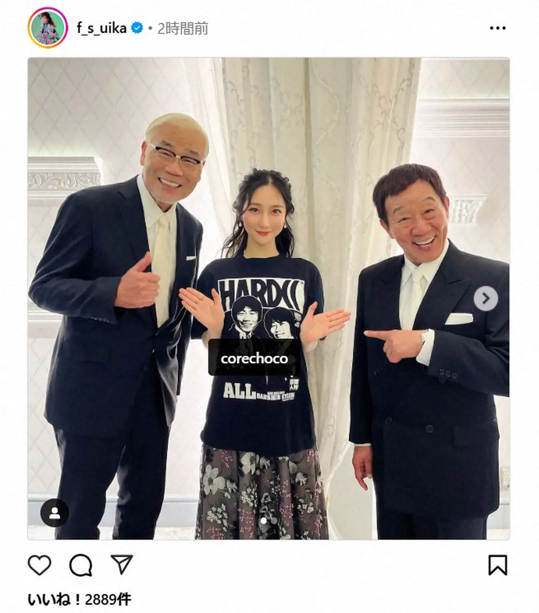 ウイカ、超大物コンビと“激シブ”Tシャツの3ショット 俳優なのに「関西芸人の誉れ」の声
