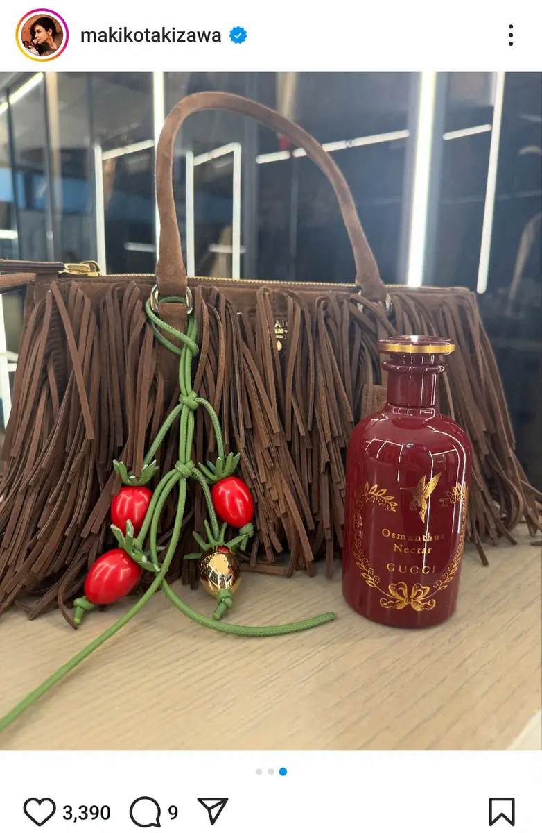 お気に入りの香りなども紹介し「最近のお気に入りの香りは@gucci」とつづけ、ハイブランド「GUCCI」の香水の瓶と、同じくハイブランドの「PRADA」のかばんを撮影したショットも公開されている。