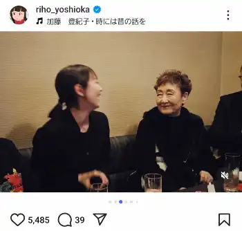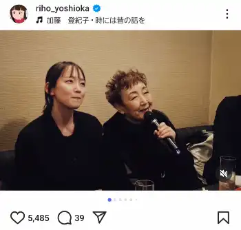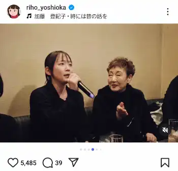 吉岡は「夢が叶った能登の夜。」とつづり、ヒットソング「百万本のバラ」などで有名なシンガーソングライター加藤登紀子(81)とカラオケでデュエットする様子や、加藤を見つめ微笑む吉岡のショットなど計7枚の写真を公開した。