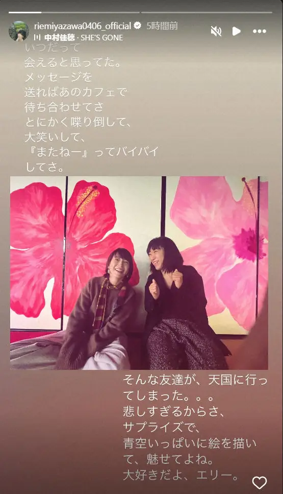 宮沢りえ Photo by スポニチ 宮沢りえ 大宮エリーさんを追悼「大好きだよ、エリー」親友との突然の別… ギャラリーで見る この記事のフォト 2025年04月27日の画像一覧 もっと見る 2025年04月27日の画像をもっと見る