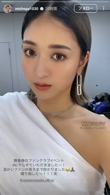 みちょぱは「舞香様のファンクラブイベント MCやらせていただきましたー!」と記し、26日に開催された山本舞香の初ファンミーティングに出演したと報告。「温かいファンの皆さまで助かりました 喋り倒したー!!」と感謝も伝えた。