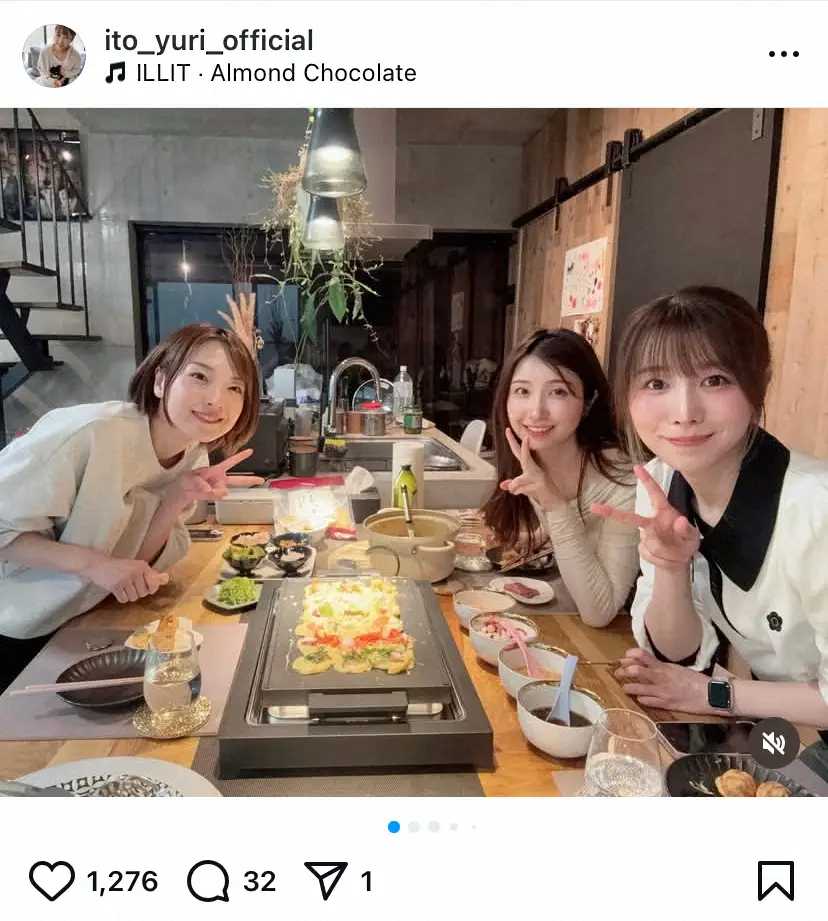 フリーアナウンサーの伊藤友里(37)が27日までに、自身のインスタグラムを更新。プロ雀士の友人2人を自宅に招いたことを伝えた。