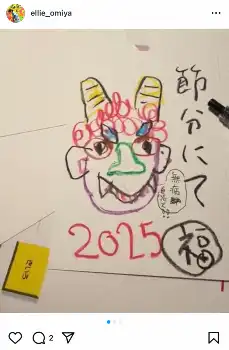 「12月には、紅葉お手紙 1月には、年賀状 2月には、節分のお手紙 配信内で作成して、視聴者の皆さんへプレゼントしてきました」とし、「節分のお手紙」では鬼のイラストに「無病息災!!」との文字が添えられていた。