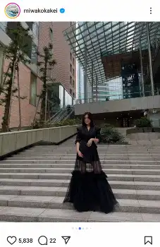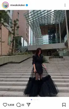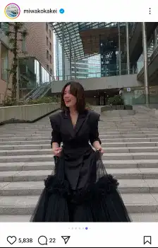 この投稿にフォロワーからは「衣装素敵」「ご結婚されて色気がマシマシですね いやらしくない色気です」「ブラックドレスがとてもきれいです。」「アートよりのスカートですね」など多くの声が寄せられている。