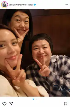 滝沢は「ある日、大好きな春菜さん夏子さんと会えた日」と書き出すと、横澤、近藤との自撮りショットをアップ。「笑いが止まらないので、毎回説明してますが食べるのや飲み物を飲むのが大変で大変で笑」と食事を楽しんだことを明かした。