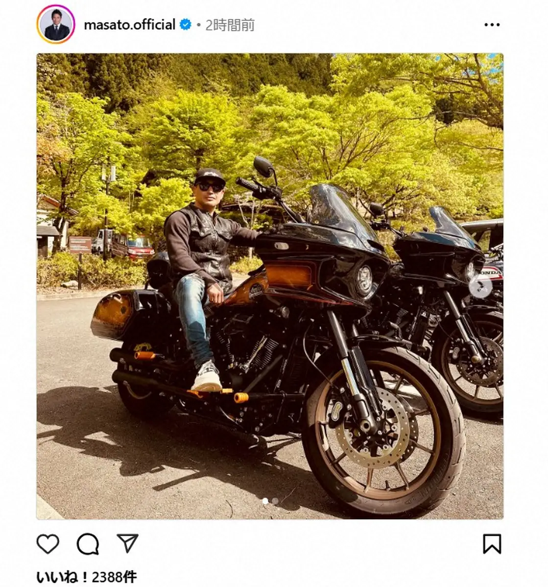 魔裟斗、ハーレーにまたがるグラサン姿公開 新緑映えるツーリング風景に「改めてデカい」「楽しそう」
