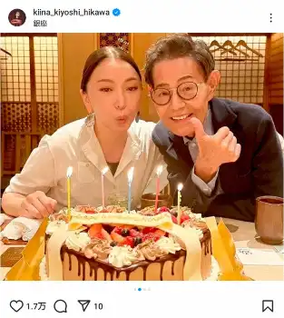 氷川きよし「親友の誕生日」人気タレントを祝福 大物夫との2ショに「年々健康で若返るご主人!」