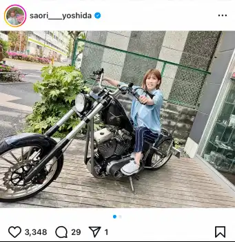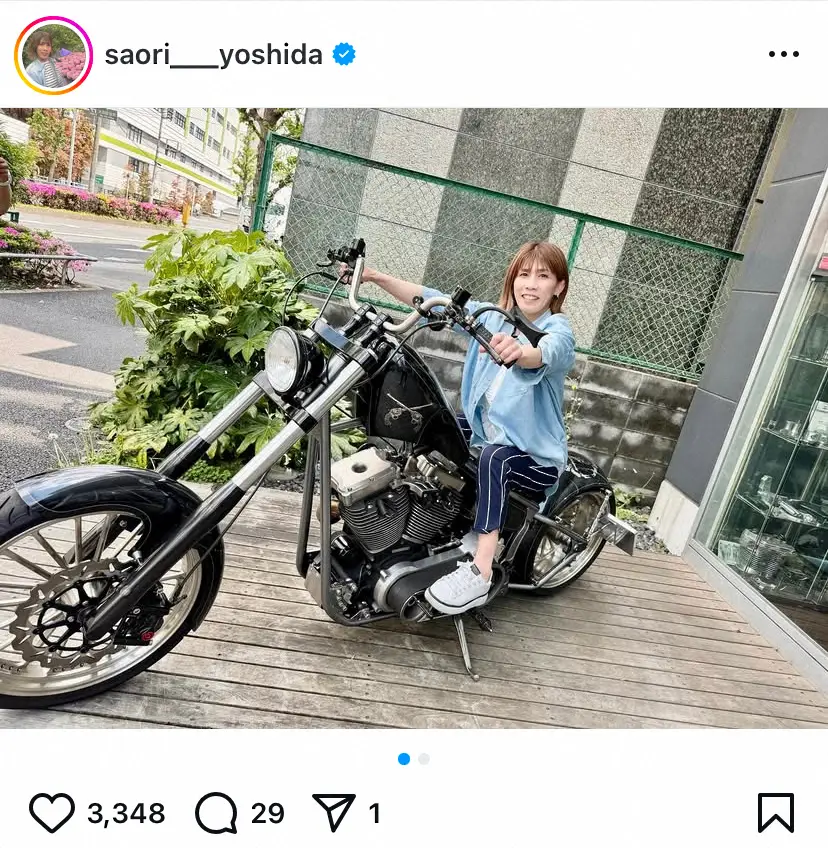 吉田沙保里さんの公式インスタグラム(@saori__yoshida)から 吉田沙保里さん「免許持ってないけど…」ハーレーにまたがる写真に反響「か… ギャラリーで見る この記事のフォト 2025年04月30日の画像一覧 もっと見る 2025年04月30日の画像をもっと見る