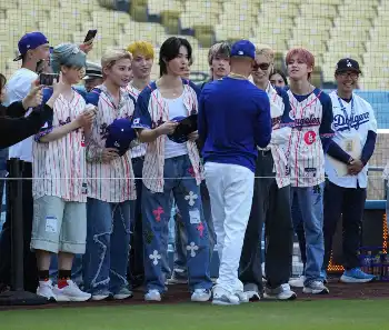 一部のメンバーは3月の世界ツアーでロサンゼルスを訪れた際、同球場に足を運んでいたが、グラウンド内に入るのはこの日が初めて。報道陣の取材に応じたメンバーは「ヤバいです」「緊張しています」と興奮を隠せない様子だった。