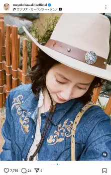 河北は「Western vibes at Tokyo Disneyland…(=東京ディズニーランドでウエスタンなバイブス)」とコメント。テンガロンハットにフリンジバッグ、ブーツを合わせたウエスタン調のコーディネートを披露した。