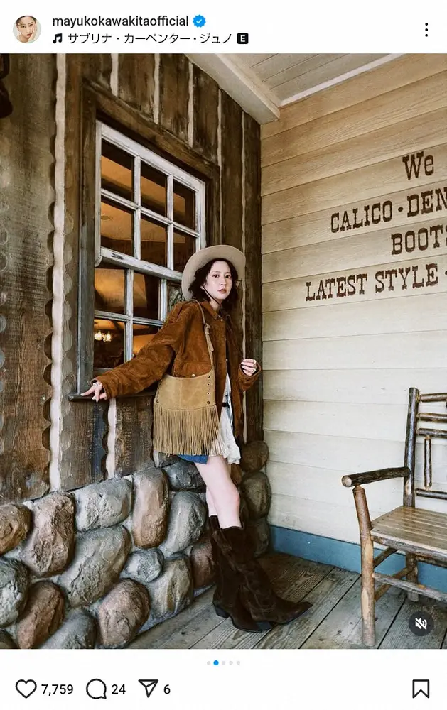 1児のママ・33歳人気モデルがウエスタンガールに!ミニ丈コーデに「ぎゃるでかわいい」「尊すぎる」