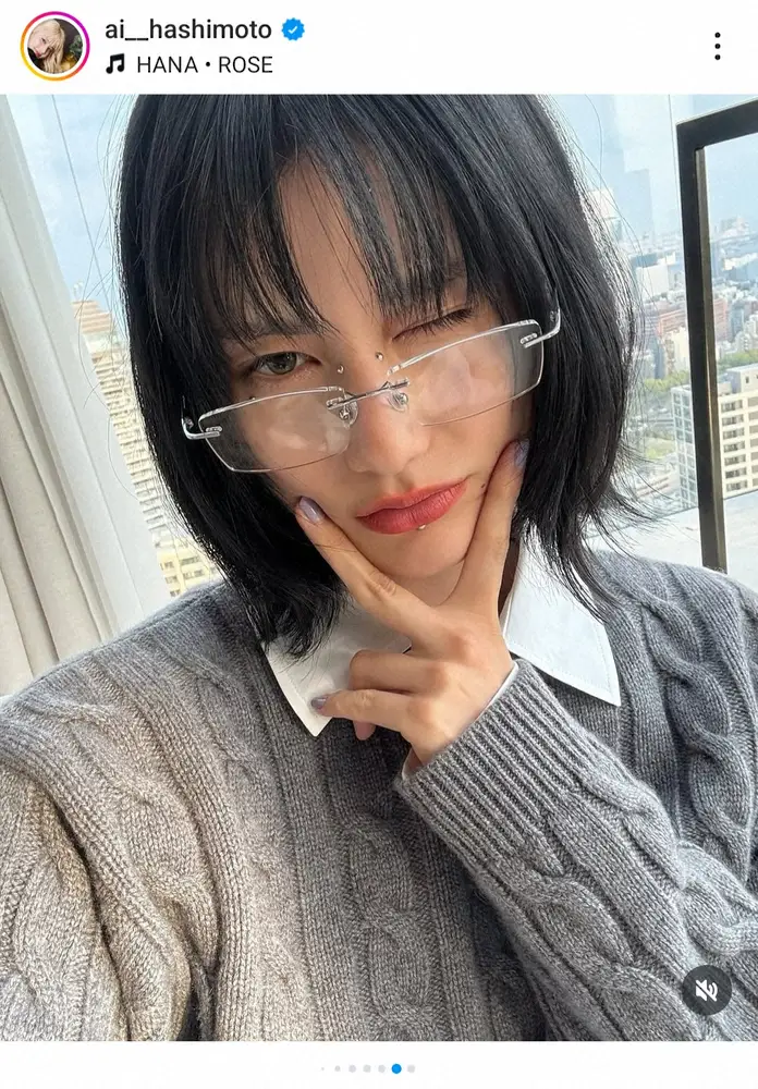 大きめの眼鏡をかけ、目の下や鼻の付け根、顎にシルバーのピアスが光る写真をアップし、ハッシュタグで「#もちろんシール」と添えた。