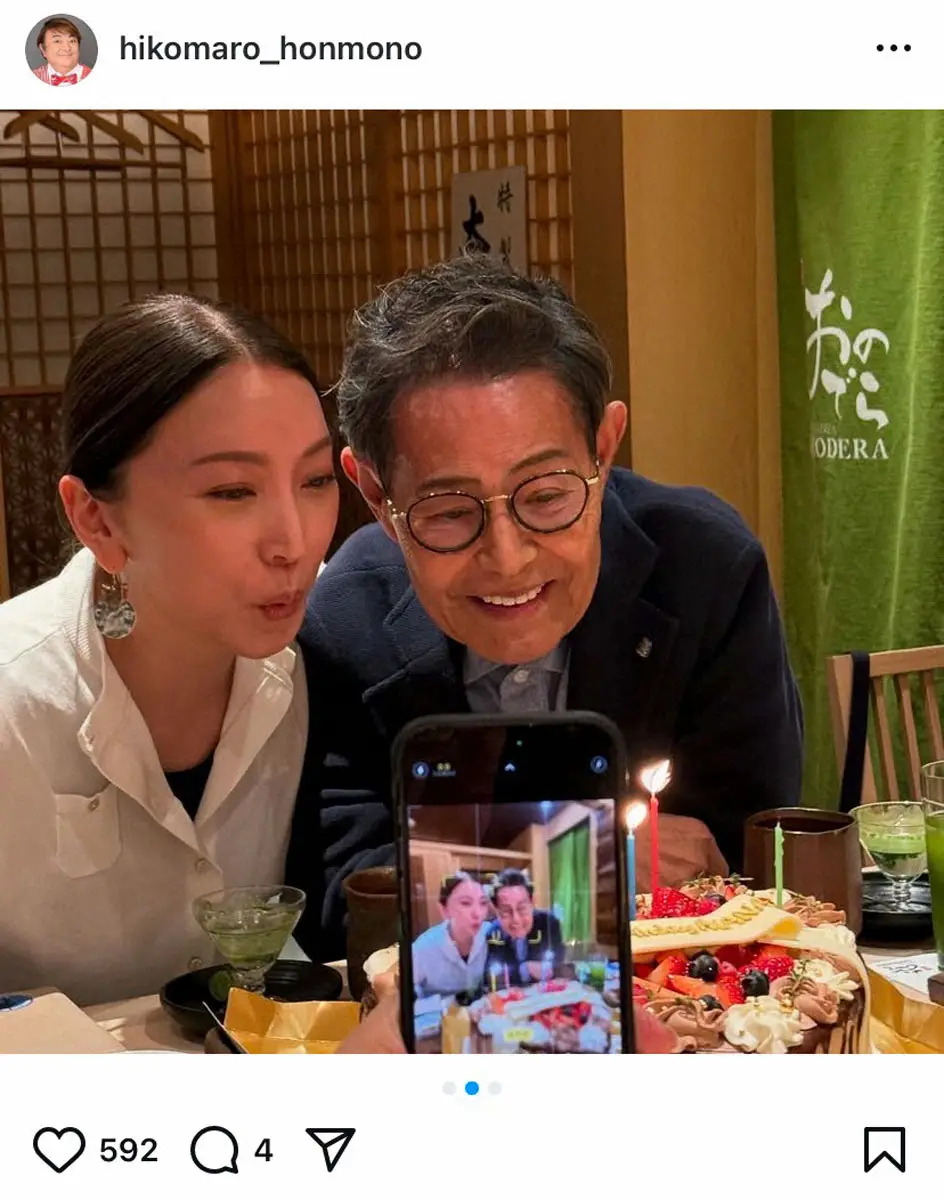 「嬉しいです」と書き出した彦摩呂。「茶さんと綾菜ちゃん。大好きなご夫妻」とつづり、寄り添う夫婦ショットを公開。12日に37歳の誕生日を迎えた綾菜の誕生日ケーキを前に2人で笑みを浮かべている。