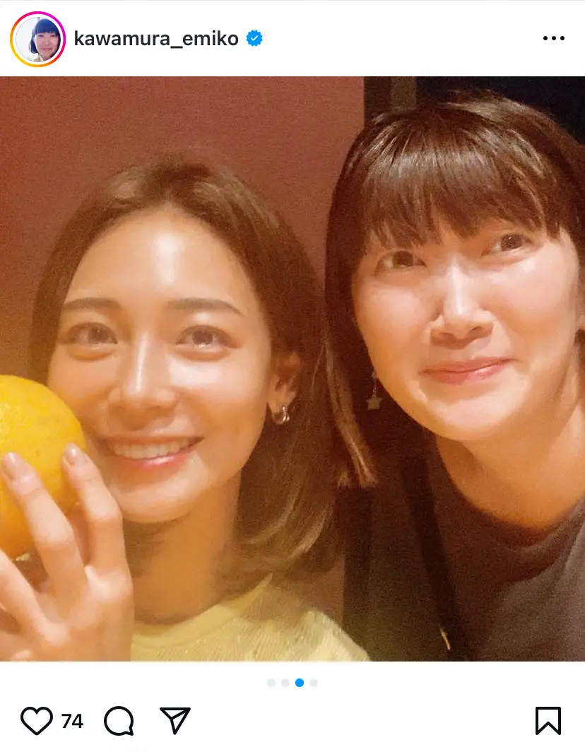 お笑いコンビ「たんぽぽ」の川村エミコ(45)が30日、自身のインスタグラムを更新。人気女優とのプライベートショットを披露した。