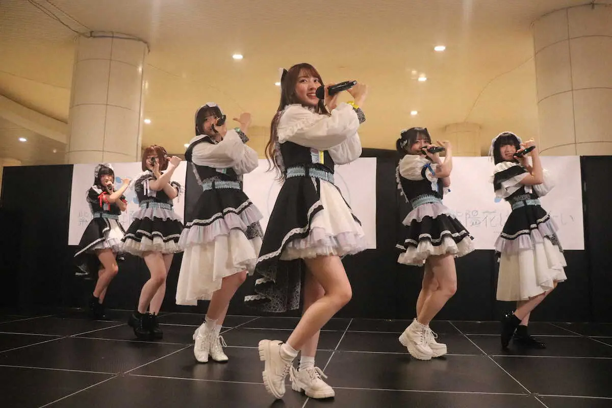 6人組女性アイドルグループ「紫陽花は降らない」が30日、東京・汐留シオサイト地下歩道でデビュー記念ライブを行った。