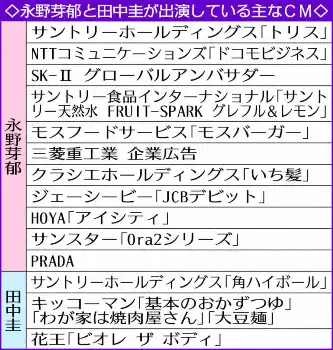 永野芽郁と田中圭が出演している主なCM Photo by スポニチ 永野芽郁&田中圭 WEB広告削除 本人たちは否定も「二股不倫」疑惑報道が… ギャラリーで見る この記事のフォト 2025年05月02日の画像一覧 もっと見る 2025年05月02日の画像をもっと見る