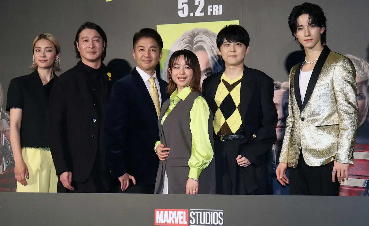 米映画「サンダーボルツ」の前夜祭に出席した(左から)秋元才加、加藤浩次、白石充、田村睦心、梶裕貴、佐藤景瑚