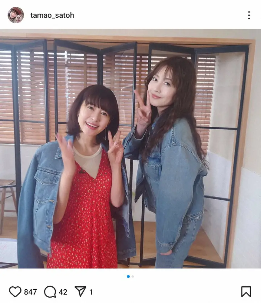 タレントのさとう珠緒(52)が2日、自身のインスタグラムを更新。女優の片瀬那奈(43)との2ショット写真が反響を呼んだ。