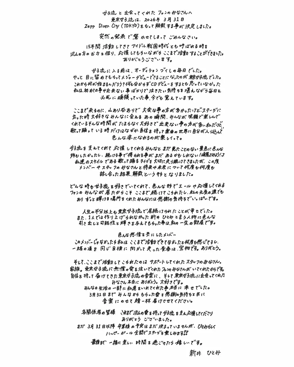 東京女子流・山邊未夢の直筆メッセージ(東京女子流公式ツイッター@TokyoGirlsStyleから) 「東京女子流」解散発表 15年の活動に幕 4人組ダンス&ボーカルグループ… ギャラリーで見る この記事のフォト 2025年05月03日の画像一覧 もっと見る 2025年05月03日の画像をもっと見る