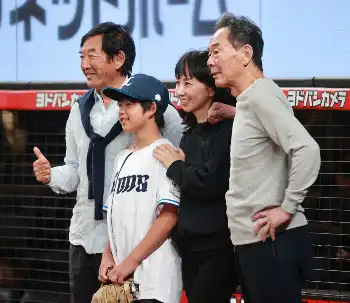 球場に勢ぞろいした家族らが見守る中、祖父ばりの見事な内角への投球で球場を沸かせると、通算251勝を挙げた修氏も笑顔で拍手を送った。