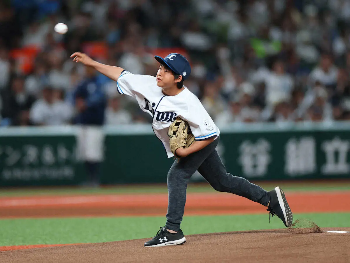 俳優の石田純一(71)とプロゴルファーでタレントの東尾理子(49)夫妻の長男・石田理汰郎さん(12)が5日、西武―ソフトバンク戦(ベルーナD)の始球式を務めた。