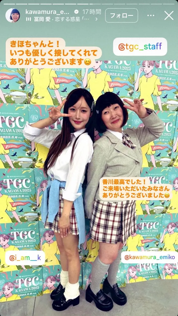 川村エミコの公式インスタグラム(@kawamura_emiko)から 45歳・川村エミコ レアな制服姿のオフショット披露 「TGC香川」で大盛況… ギャラリーで見る この記事のフォト 2025年05月07日の画像一覧 もっと見る 2025年05月07日の画像をもっと見る