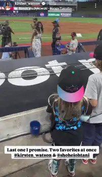 ワトソンさんが公開した動画によると、6日のマーリンズ戦前に練習を終えてベンチに引き揚げようとしたところ、ワトソンさんが大谷に対してスタンドにいるマーリンズのユニホームを着た2人の子供の存在を告げている。それに気づいた大谷が満面の笑みでスタンドの子供に手を振る場面があった。