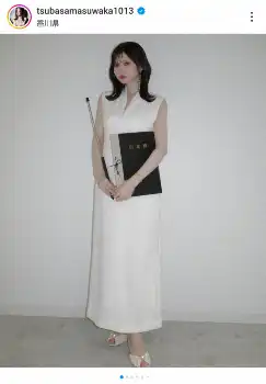 清楚な白のロングワンピースに指示棒と出席簿を持つ写真を公開し、「今回つばさ先生として出ました。上品かつ華やかなイメージのキラッキラ先生です!」と紹介した。