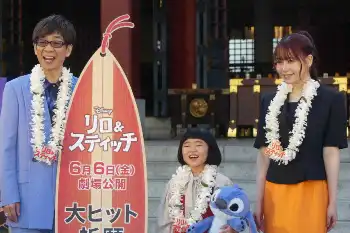 子役の永尾柚乃(8)、声優の山寺宏一(63)、女性11人組「ME:I」のMOMONA(21)が8日、東京都千代田区の日枝神社で日本語吹き替え声優を務めた映画「リロ&スティッチ」(来月6日公開)の大ヒット祈願イベントを行った。