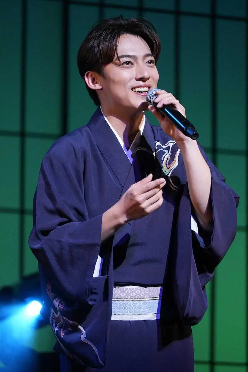 オープニングでは、五木ひろし(77)からもらったという着流しを身にまとい登場した。辰巳の体格に合わせて五木がサイズを調整してくれたといい「五木先輩から頂いた衣装を着させてもらって歌うので気が引き締まる」。「まだまだですけど」と前置きした上で「少しでも若手の演歌界の中で託されたのかなという、そういった責任感や重みを感じます」と話した。