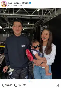 【画像・写真】岡副麻希「いつもと違う蒲生さんを…」1歳長女と夫のレース観戦&応援 家族3ショットに「幸せそう」の声