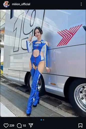 人気レースクイーンの有栖未桜(30)が9日までに自身のインスタグラムを更新。ブルーのコスチューム姿を披露した。