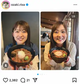 尾崎里紗アナ 肉掲げ幸せショットに「姉妹みたい」元同僚の先輩アナと“肉づくし”旅行