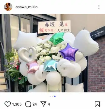 大沢は、観劇だけでなく豪華なスタンド花まで贈り、仲間の活躍を喜んでいる様子だった。