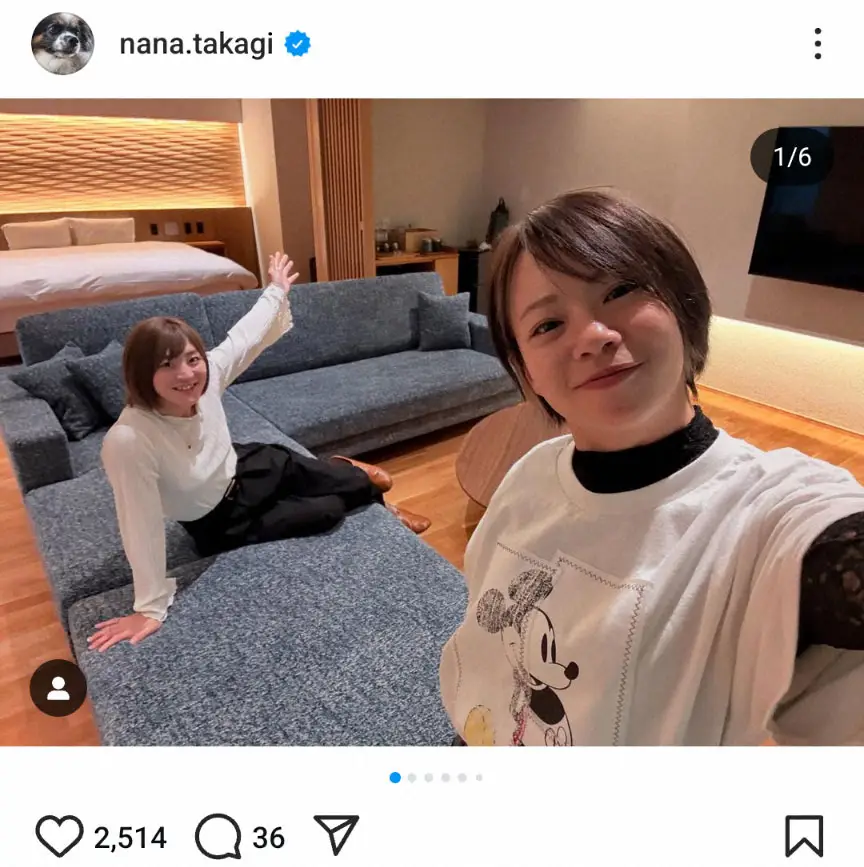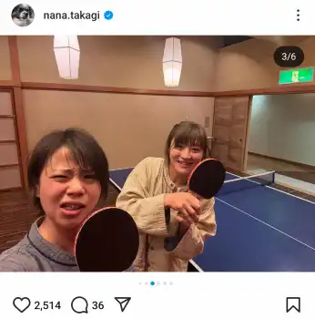 部屋でくつろぐショットや卓球ラケットを手に“変顔”を見せる姿など仲良し旅を満喫する写真6枚を公開。「美味しいものを食べて飲んで!温泉を満喫して、サウナで整って 卓球してオセロして コナン鑑賞もして 最高に楽しかった1泊2日でした」と振り返り、「卓球は高木菜那の勝ち オセロは角田夏実の勝ち 今度動画載せます笑 オセロは45分間の真剣勝負。笑 なっちゃん強かった…笑」と楽しそうにつづった。
