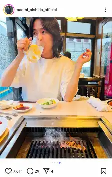 【画像・写真】西田尚美 ジョッキ片手に焼き肉頬張る!“母の日”自然体S披露にファン絶賛「いい笑顔♪」