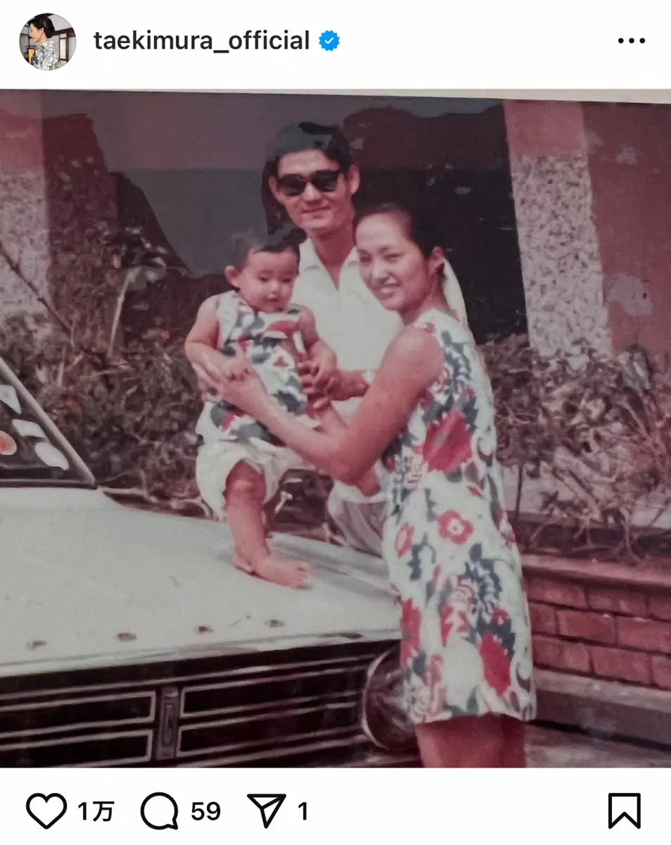 この投稿にファンからは「綺麗なお母様ですね!ちょっと高倉健さん似のお父さん!」「やっぱお母さんも美人」「ドラマのワンシーンかと思いました」など絶賛の声が寄せられた。