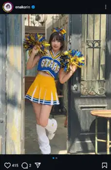 人気コスプレイヤーえなこが12日までに自身のインスタグラムを更新。チアガール・コスチューム姿を披露した。