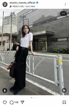 前田は「私服」「ootd(今日のコーデ)」などのハッシュタグを添えてこの日の私服を披露。「LOEWE」「therow」「clane」などのブランドタグも使用して着用アイテムをアピールした。