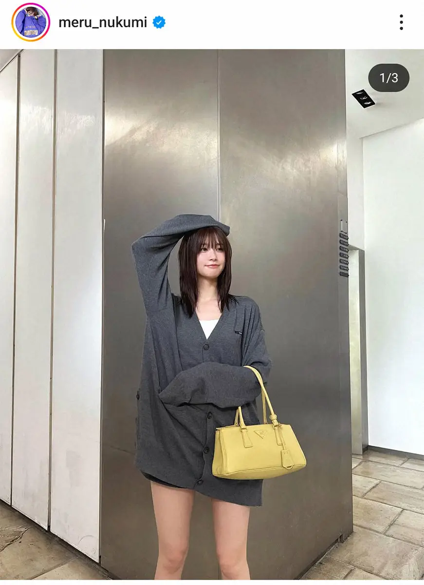 生見は「いつもと違うヘアメイクしてもらった日ぃ」とつづり、いつもとは雰囲気の違うヘア&メークに、オーバーサイズのカーディガン姿の写真を投稿。