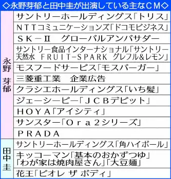 週刊文春が先月24日に不倫疑惑を報道後、今月1日までにアイシティが永野、キッコーマンが田中のCM動画などを公式サイトからそれぞれ削除。サンスターとJCBは文春が続報を伝えた8日に永野のCM動画を削除していた。