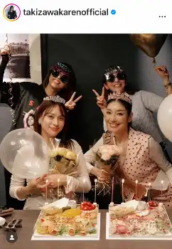 第1子妊娠中のモデルでタレントの滝沢カレンが33歳の誕生日を迎えた13日、自身のインスタグラムを更新。仲良しのフリーアナやタレントたちから祝ってもらった姿を公開した。